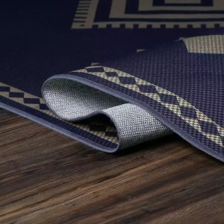Bring a unique look to any space with this Navy and Tan Kilim Washable Area Rug. Its warm tones and washable design make this rug both stylish and convenient!