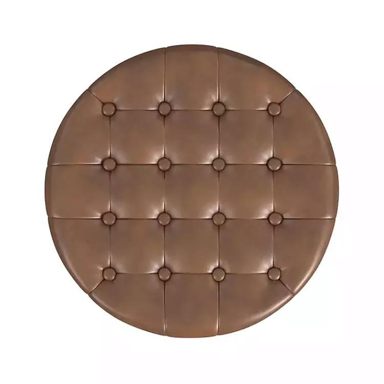 Keep your space tidy in style! This Brown Faux Leather Tufted Storage Ottoman features a sophisticated look and a hidden storage compartment. You can hide away almost anything, from throw blankets to remotes!