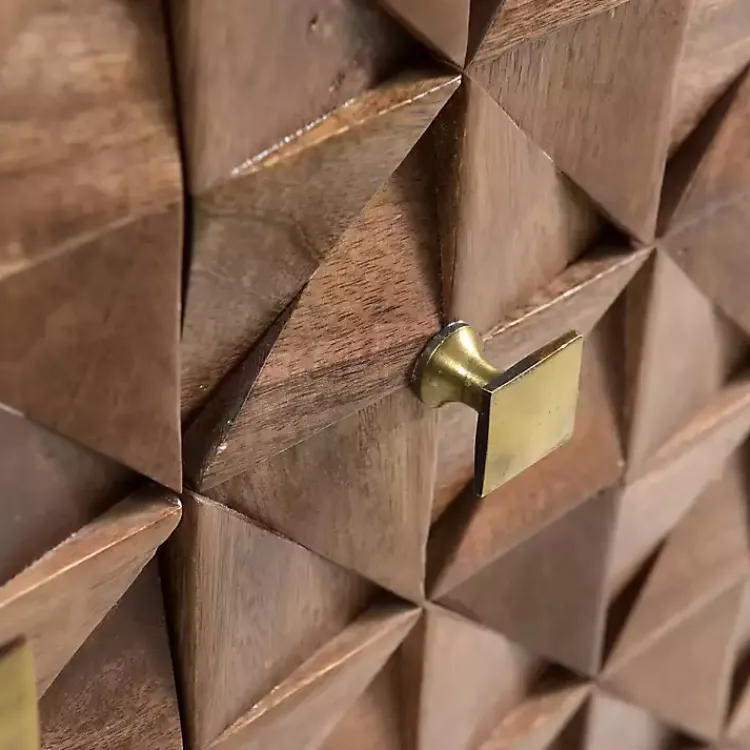 This Brown Carved Wood Woven 2-Door Cabinet radiates mid-century modern beauty! The hand carved, geometric patterns result in a dimensional look, making it a stunning statement piece for your home.