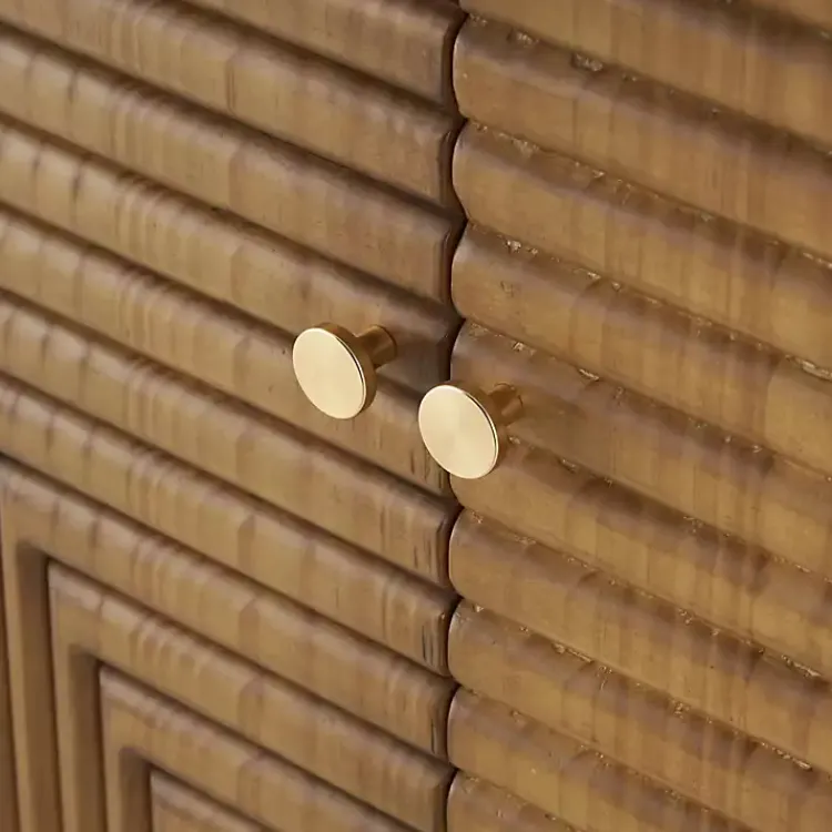 Accent your space with style and storage! This Modern Wood Geometric Cabinet features art deco-inspired door fronts and gold finishes to add a chic, sophisticated touch to your space while providing functional storage.
