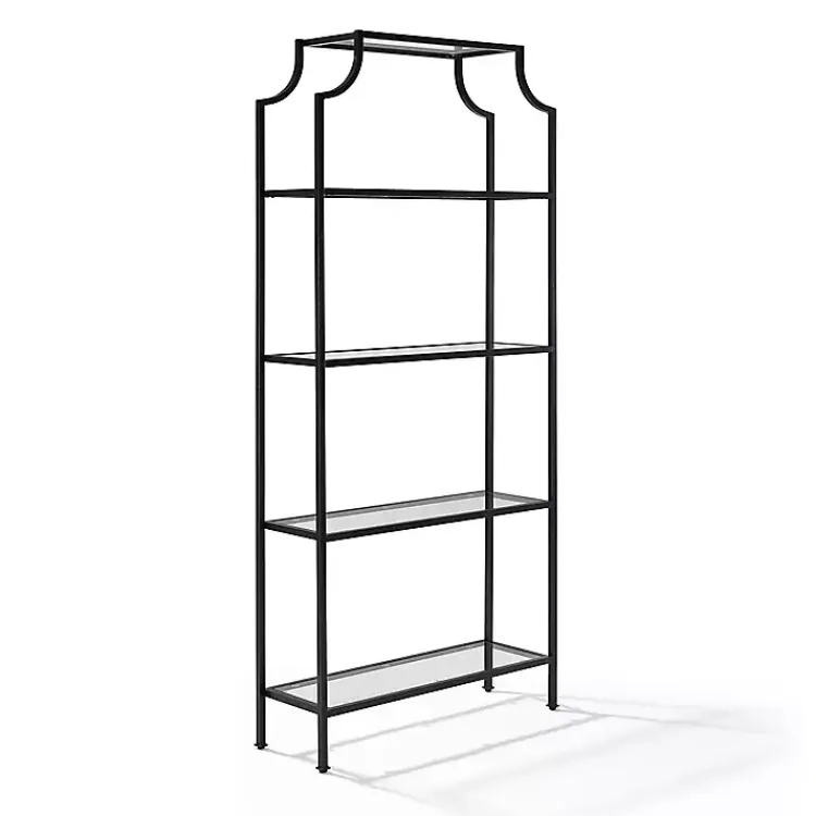 This pagoda-style Oil-Rubbed Bronze 4-Tier Glass Ashlee Etagere is a beautiful piece that will fill out your living space. Its four shelves provide plenty of storage without overwhelming the room.