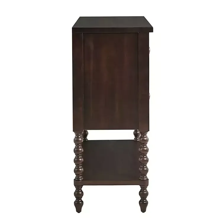 Elevate your living room with the sophisticated style of the Brown Wood Turned Legs 2-Drawer Chest. This accent chest features a solid wood frame and elegant turned legs in a dark morocco finish for a clean traditional look.