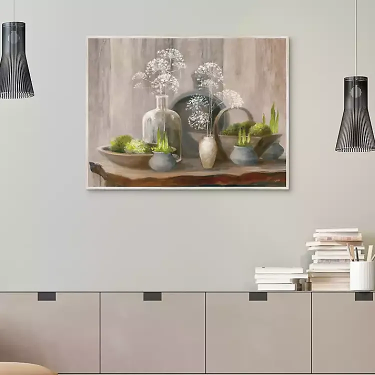 Bring an earthy touch of nature into your home with this Rustic Elegance Framed Canvas Art Print. Pops of green among a neutral color palette give this piece a unique flair!