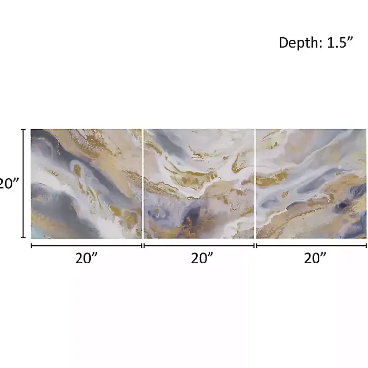 Designed by artist Blakely Bering, this Shimmering Symphony Triptych Canvas Art Set features glitter and gold foil accents in blue hues. Glamorous and luxurious, it’s perfect for space-conscious areas!
