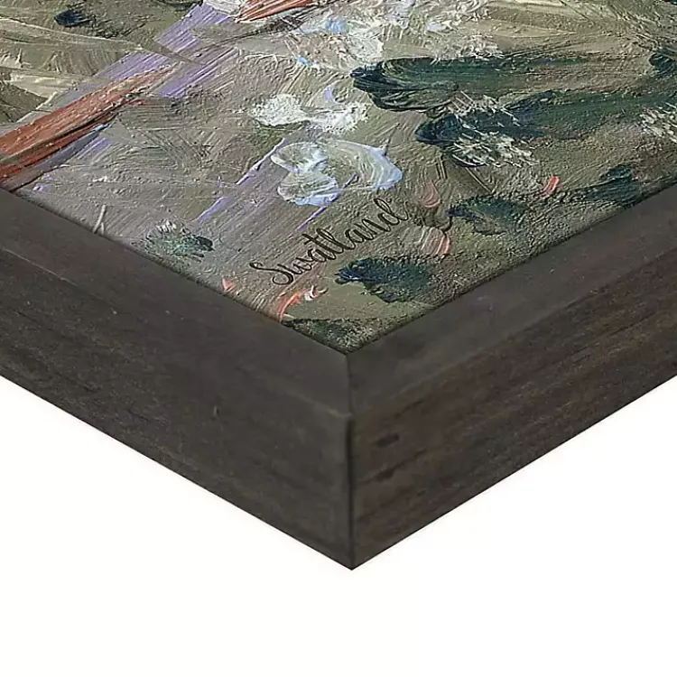- Steel-colored frame around wrapped canvas