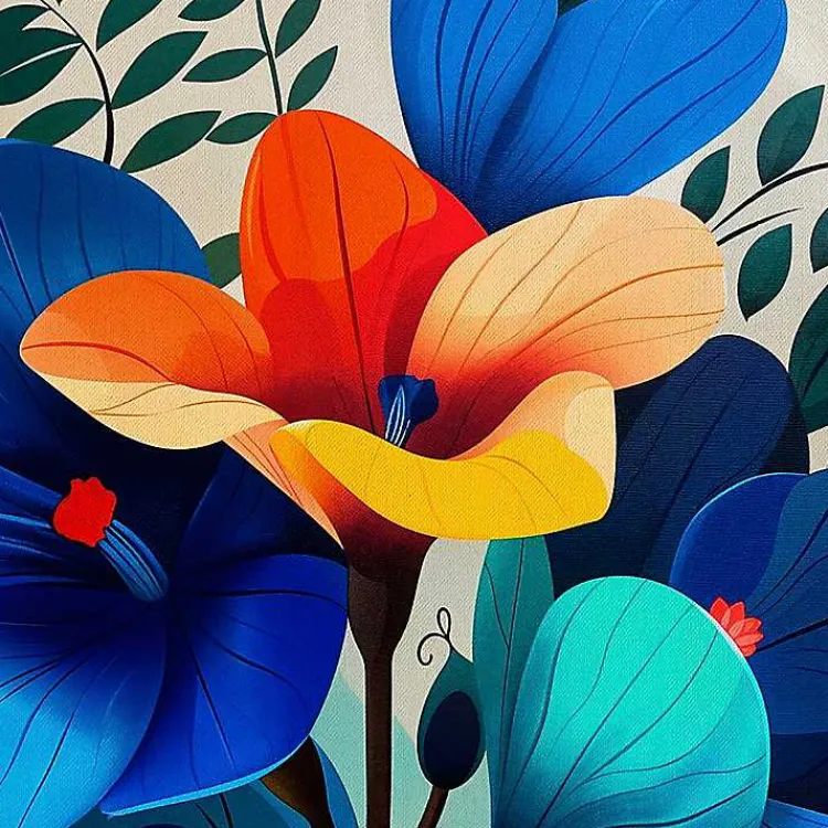 Alive with bold, electric colors, this Ultra Violet Blooms II Framed Canvas Art Print will make a statement on any wall. You’ll love how it brightens up your space!