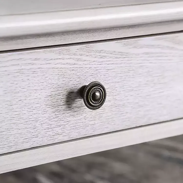 This Antique White Wood 4-Drawer Heather Coffee Table has everything you need to elevate your living room! With a distressed finish, turned legs, and plenty of storage, this coffee table is sure to add a touch of rustic charm to your space.