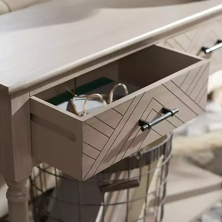 Traditional and modern style come together with our Greige Chevron 2-Drawer Console Table! You’ll love how the neutral finish makes this table perfect for any space. The chevron details add a fresh, contemporary look to accent your home!
