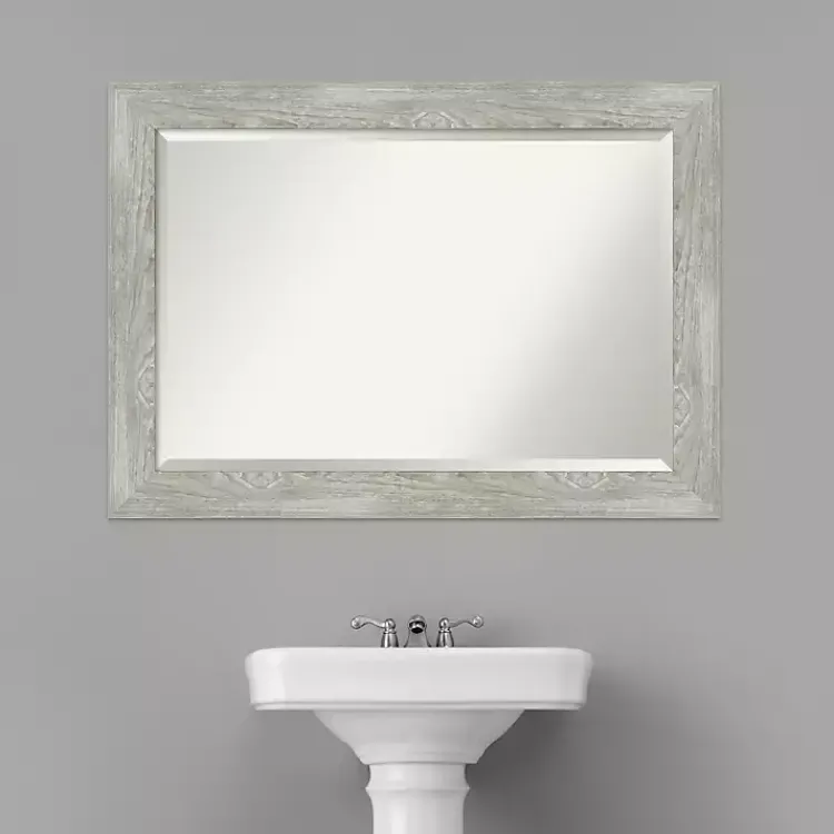 Our Dove Gray Scoop Frame Beveled Mirror will freshen up your walls with neutral, rustic style! The weathered woodgrain finish suits any décor style from farmhouse to contemporary.