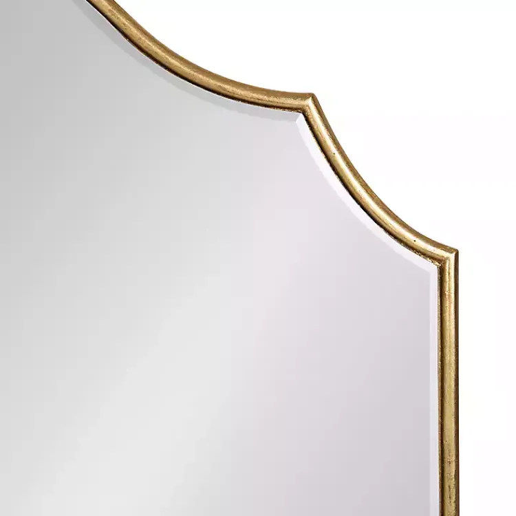 The Leanna Gold Arched Frame Mirror boasts a scalloped shape that takes inspiration from Moroccan design. Create a stunning focal point above a mantel or console with this elegant piece!