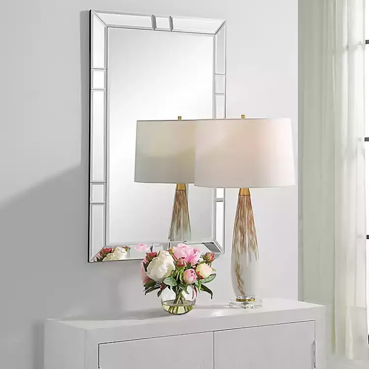 Accent your space with this Notched Bevel Rectangle Wall Mirror! The classic elegance will make your space look modern and chic. You’ll love it in your entryway or living space!