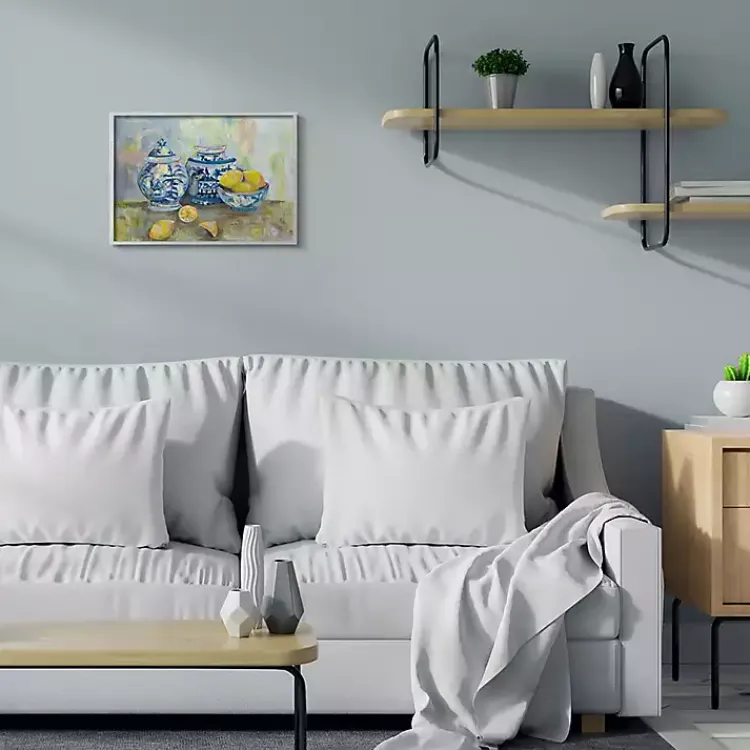 Freshen up your decor with our beautiful Lemons in Blue Pottery Wooden Art. The bright yellow hues really pop next to the deep blue hues of the pottery.