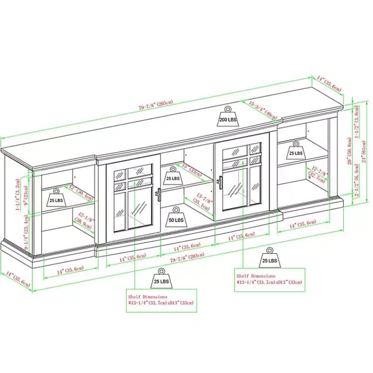 - Console measures 80L x 16W x 24H in.