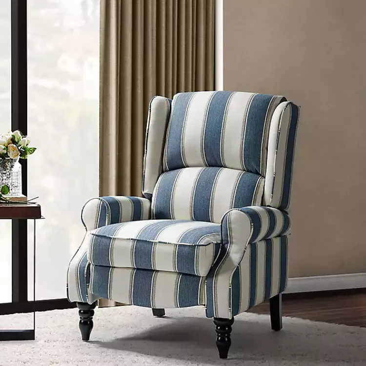 Sit back and relax with our Blue and Tan Stripe Traditional Recliner. Featuring a sophisticated look and extra comfy design, this chair will make a wonderful addition to your living room, office, or den!