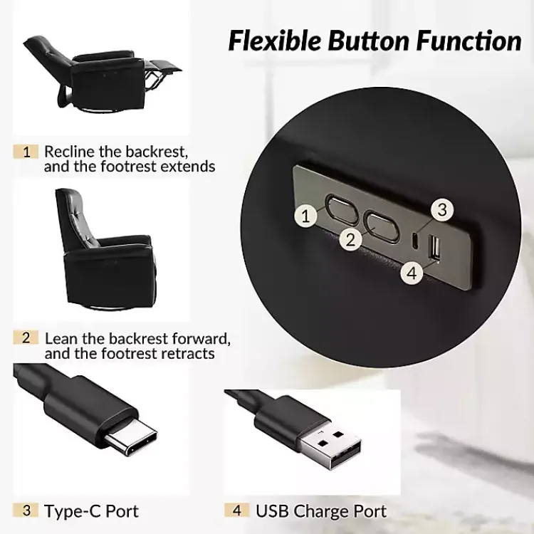 This Val Black Faux Leather Swivel Power Recliner has your back, literally! This recliner is perfect for laying back and relaxing, plus it has the ability to charge your devices. Its stylish design will elevate the look of any room in your home!