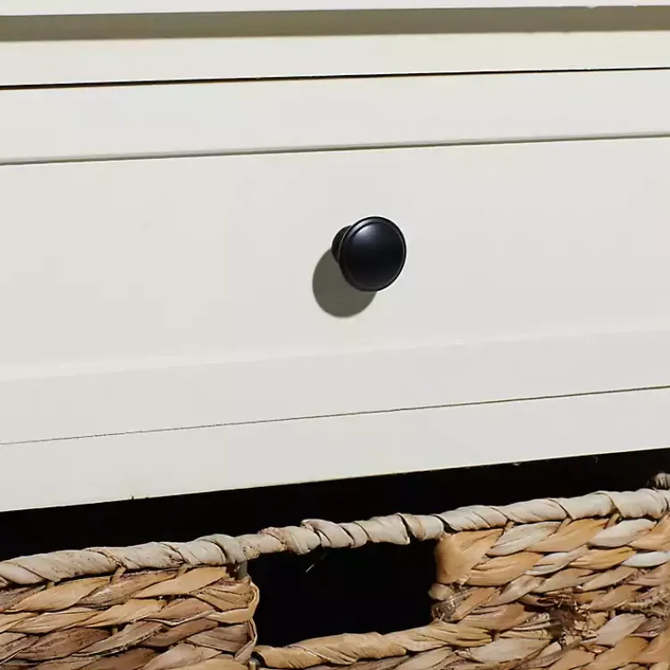 Our Cream Wood Side Table with Woven Baskets is designed with the essence of timeless sophistication, where rich old-world textures and warm hues come together for a refined classic taste of understated luxury. You’ll love the woven baskets for extra storage!