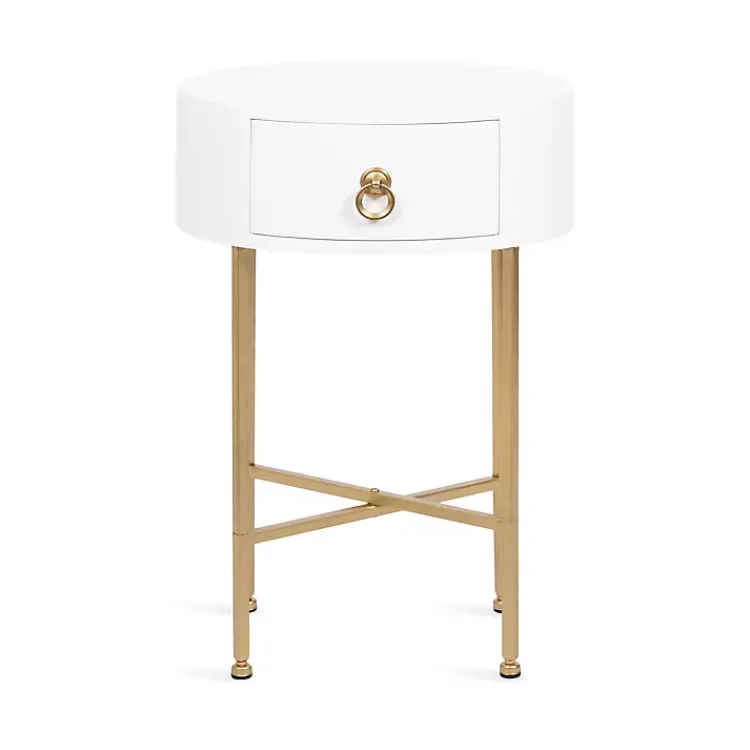 Embrace the stylish design and chic gold finish of this White Oval Decklyn Accent Table! This lovely accent table is handcrafted from a resilient wooden material, giving you a timeless accent that is perfect for storage and display.