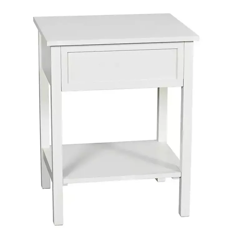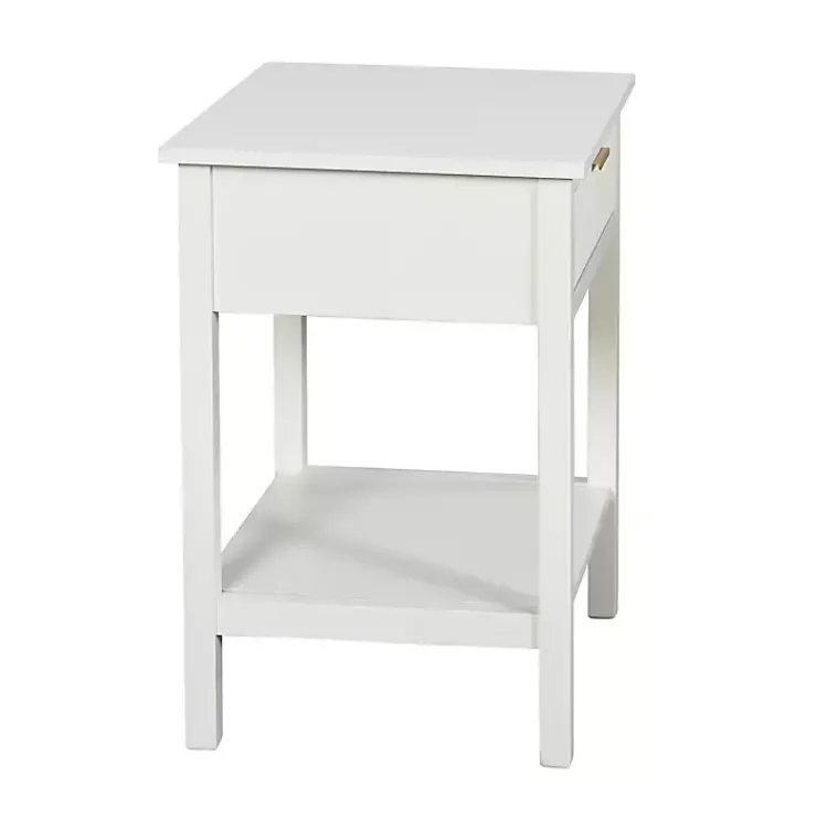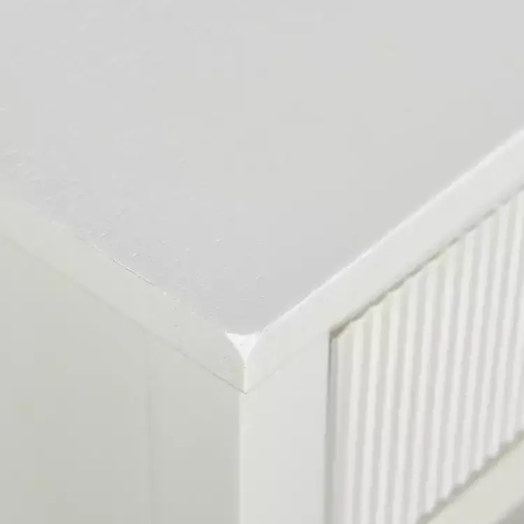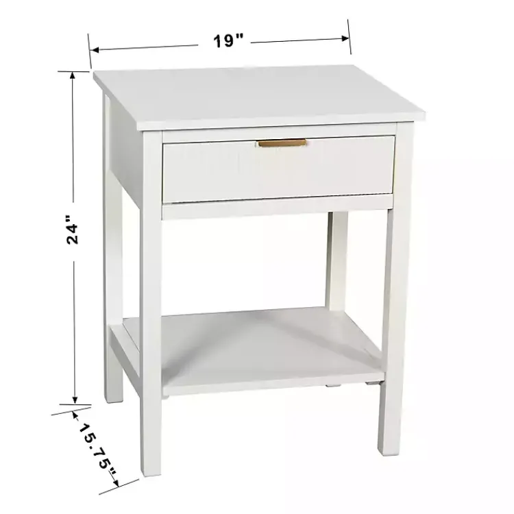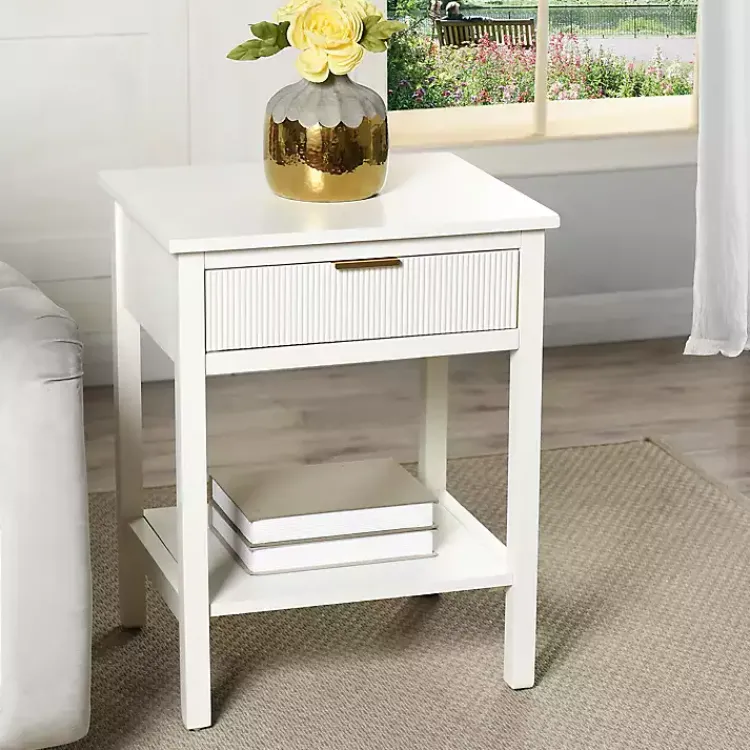 Refresh your space with a modern touch! This White Ribbed Wood Colleen Accent Table features a crisp white finish and chic gold handles for an elegant, elevated look. With one drawer and a lower shelf, this accent table has what you need to stay organized in style!