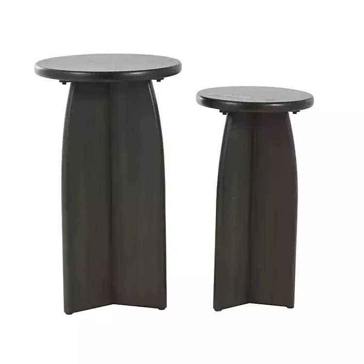 Add dimension to your space with these Black Wood Modern Accent Tables! These unique accent tables are perfect for small spaces. You’ll love the look of the black finish!