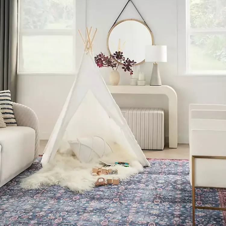 This Blue and Brick Floral Washable Area Rug will bring a striking beauty into your home. With its washable design, it’s perfect for homes with kids and pets!
