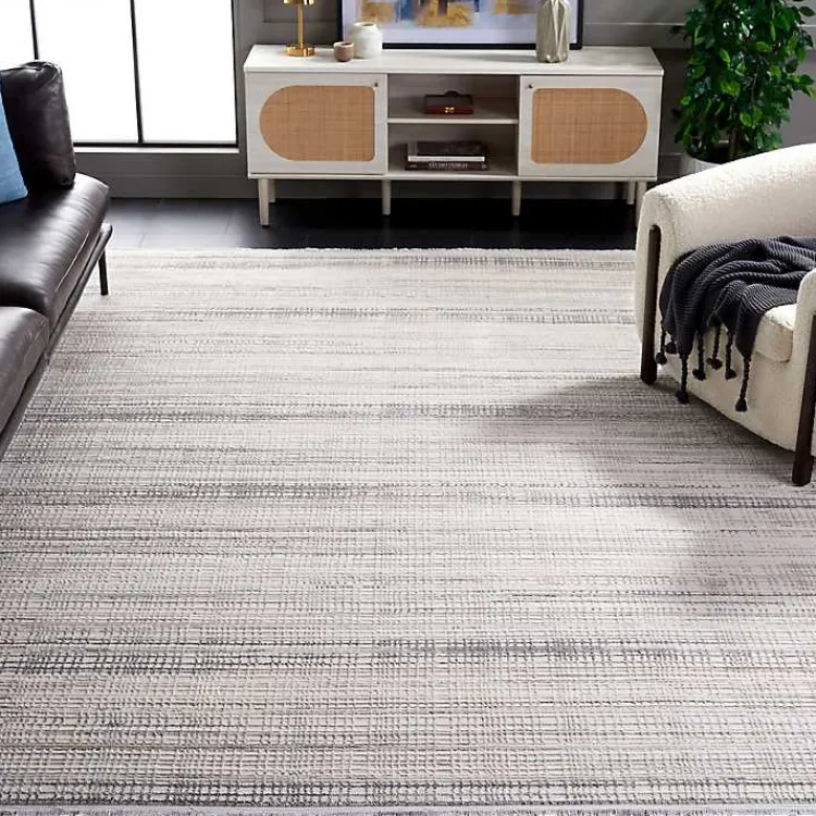Bring both style and comfort into your home with this Gray and Ivory Whisper Striated Area Rug. Its chic, modern beauty will effortlessly update your space!