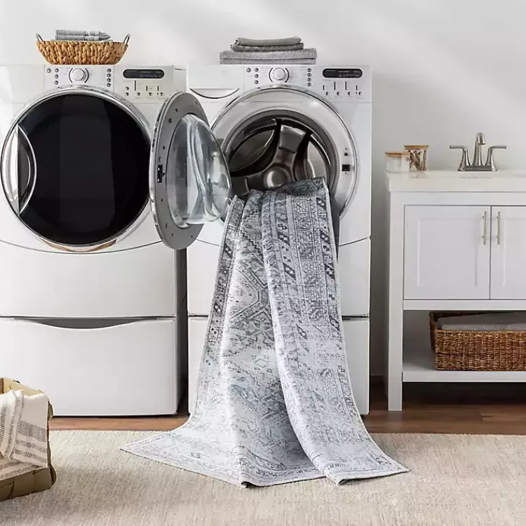 Our Blue Traditional Washable Area Rug embraces a classic look with cool tones. With its washable design, this rug makes it easy to keep your space feeling fresh and clean!