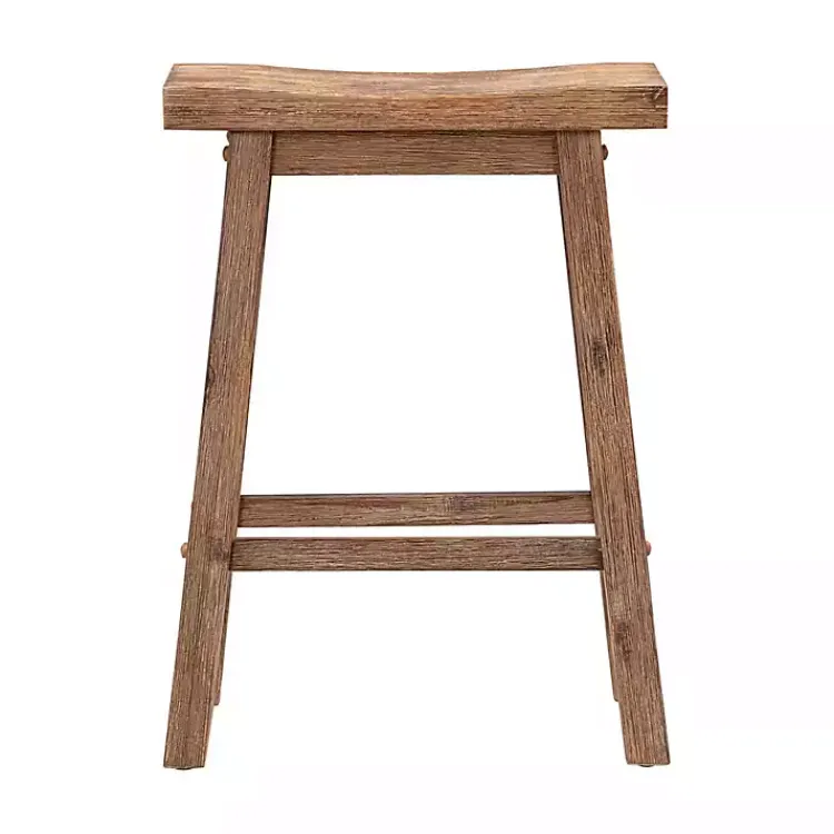 Add a natural look to your kitchen counter with the Acacia Barnwood Saddle Counter Stool Set! The wire-brushed finish creates a rustic, distressed look, while the ergonomic design ensures a comfortable seating experience.
