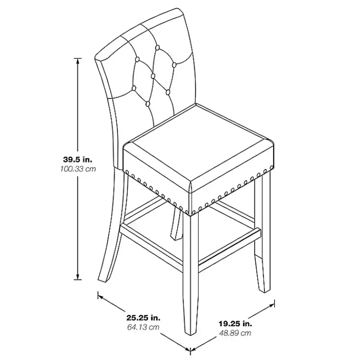 - Each stool measures 19.25L x 25.25W x 39.5H in.; seat height: 25.5 in.