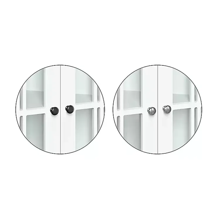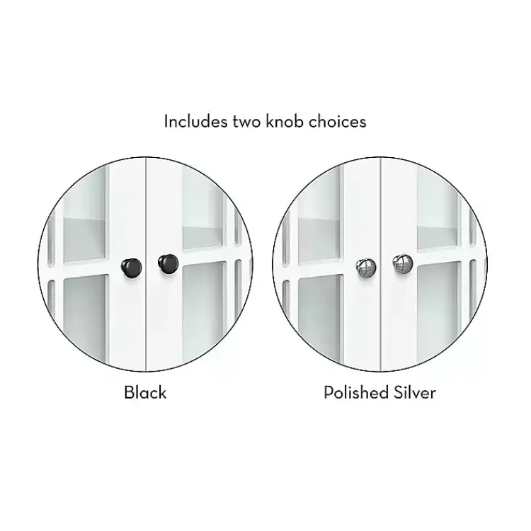 Our White Wood Two Pane Glass Doors Corner Cabinet will help maximize every inch of your bathroom! Guests will love how the glass doors takes the guesswork out of finding bathroom necessities!