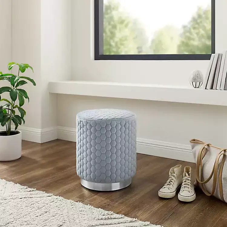Put your feet up and relax in style with the help of this Blue Quilted Honeycomb Ottoman! With a tufted texture and blue-gray color, this is the perfect comfy accent for your modern space.