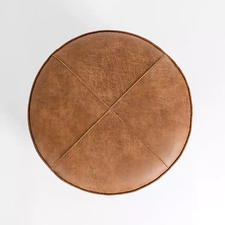 Keep your spare blankets and throws tucked away in our Brown Wyatt Faux Leather Storage Ottoman. Upholstered in a faux leather with subtle distressing, this ottoman flaunts warmth and rustic appeal. Incorporate classic Wyatt character into your home with this stylish storage piece.
