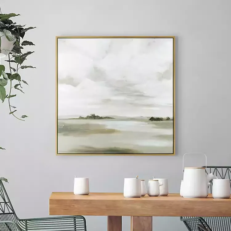 The soft grays and greens of this A Cloudy Day Framed Canvas Art Print captures the calm feeling of an overcast day. You’ll love the simple beauty it adds to your space!