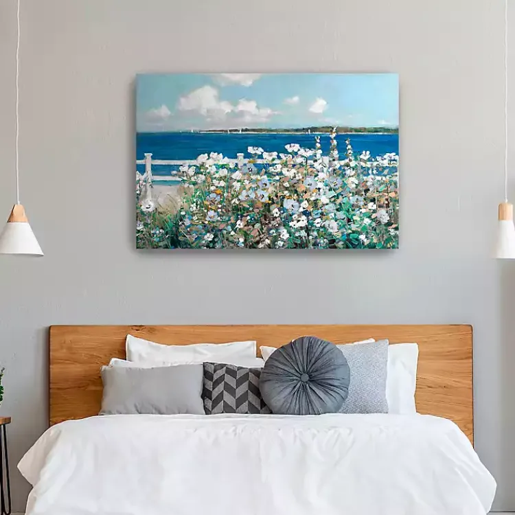 Freshen up your space with blooming flowers and an ocean view! The Bayside Garden Canvas Art Print captures the natural, free-spirited charm of the coast.