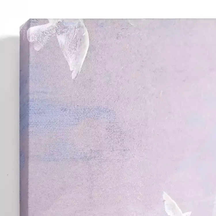 Give any wall a breathtaking view with this Birds in a Purple Sky Canvas Art Print. Soft purples and blues create a dreamy backdrop for these ethereal birds to take flight!