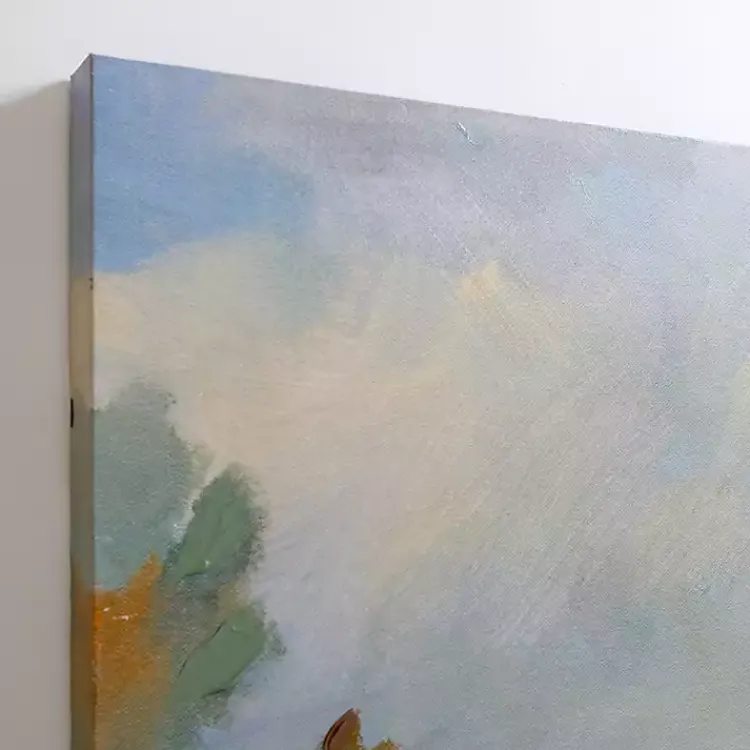 Featuring a charming, peaceful landscape, this Down by the River Canvas Art Print will fill your space with a sunny, spring beauty, even on rainy days!
