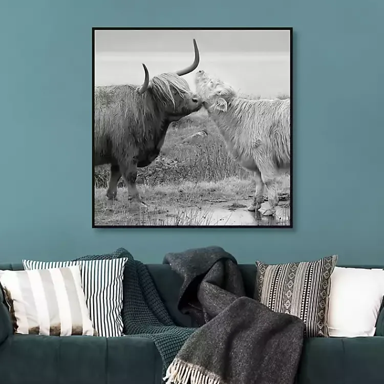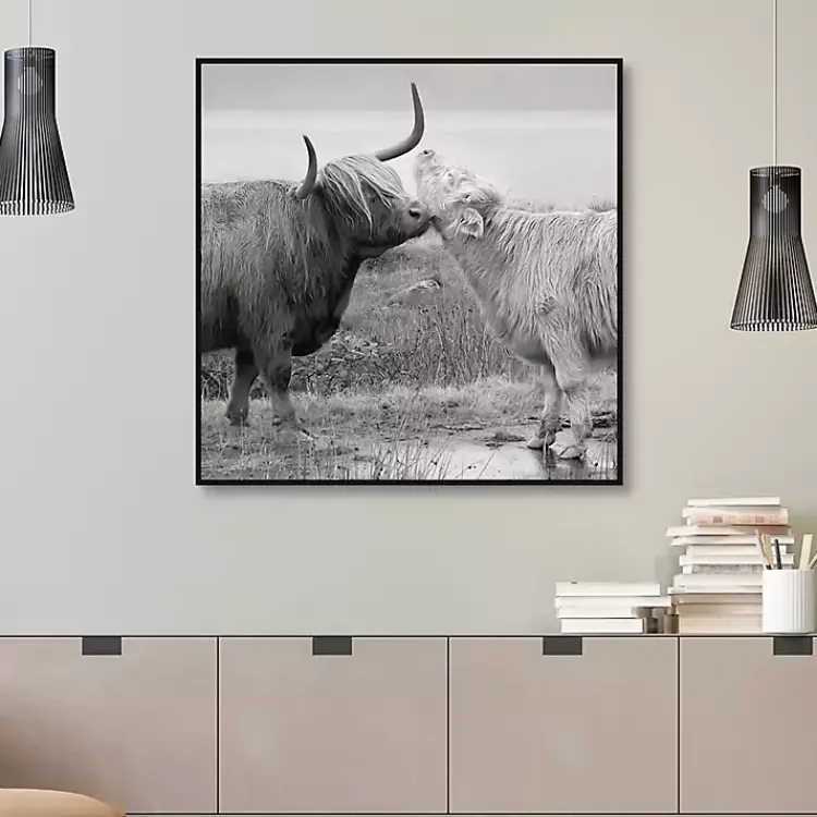 The adorable pair in this Highland Courting Framed Canvas Art Print will add the sweetest touch to your walls. Its rustic, grayscale style will complement your farmhouse decor!