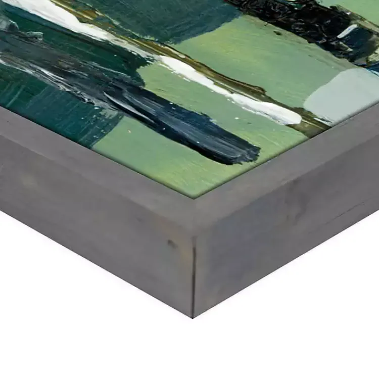 The Quiet Birch Forest II Framed Canvas Art Print is sure to spread a tranquil feeling throughout your home. The abstract style and shades of green blend into an ethereal design.