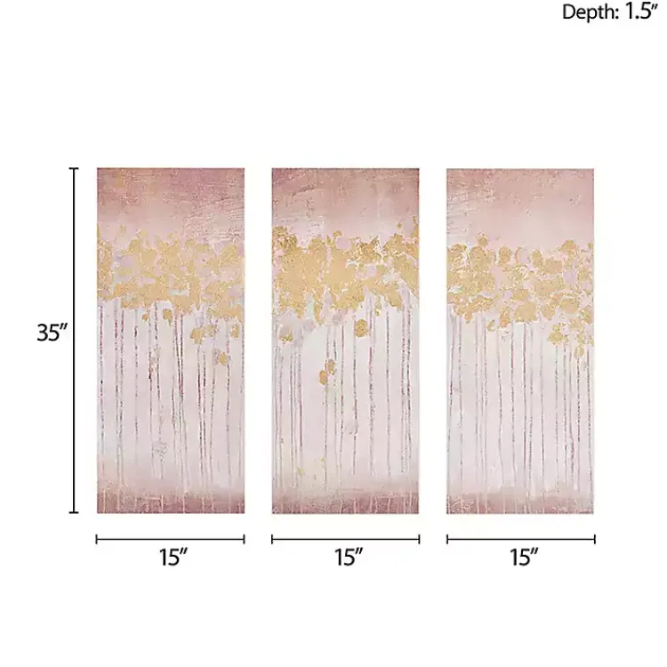 The golden hues in this set of prints are sure to perfectly complement any home’s style. The Twilight Forest Canvas Art Prints are a must have for any space.