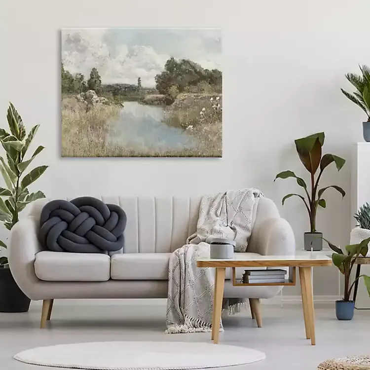This Wilderness Stream Canvas Art Print will fill any wall with natural beauty. With soft greens and blues, this piece captures the tranquility of the countryside!
