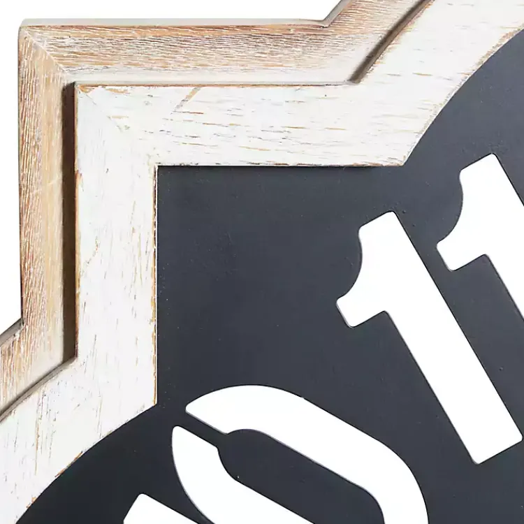 Create a bold focal point on any wall with this Black Metal Quatrefoil Farmhouse Wall Clock. Made with contrasting finishes and cutout numerals, it’s sure to make an eye-catching statement!