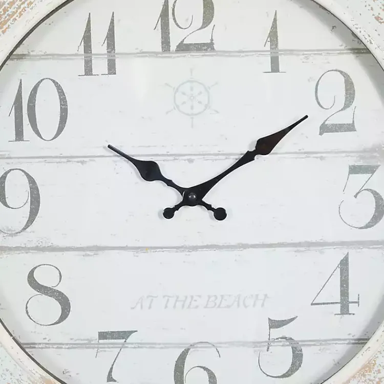 - White, wood slat clock face