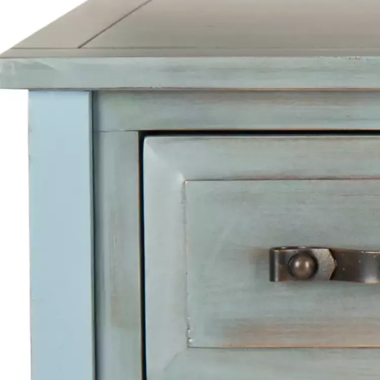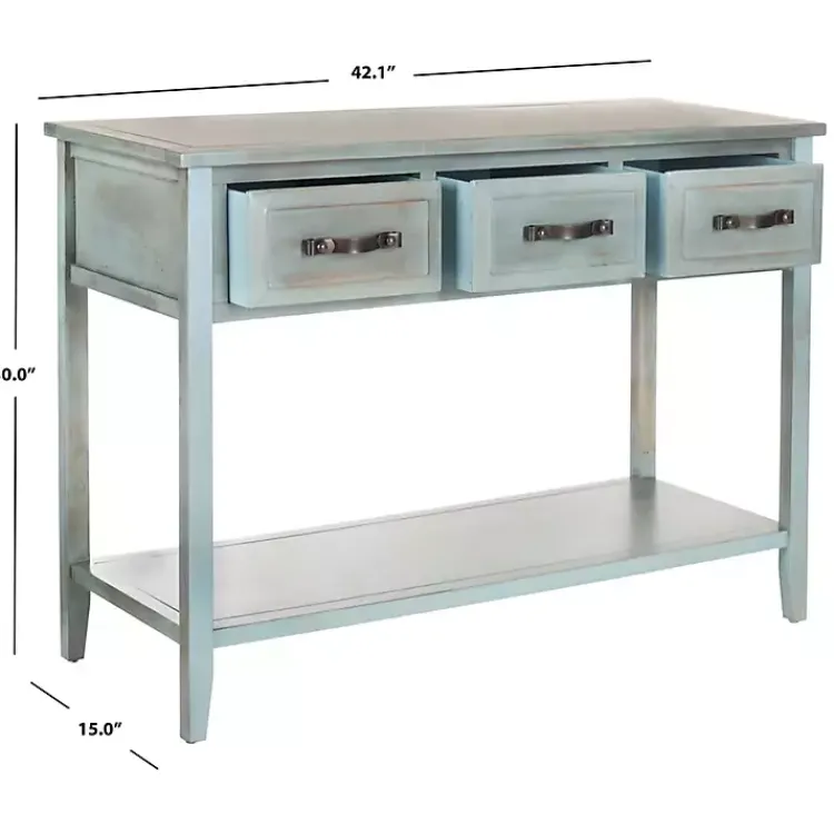 Bring a splash of color to any country or cottage setting with this Distressed Light Blue 3-Drawer Console Table. It features plenty of storage space to display your decor with rustic charm.