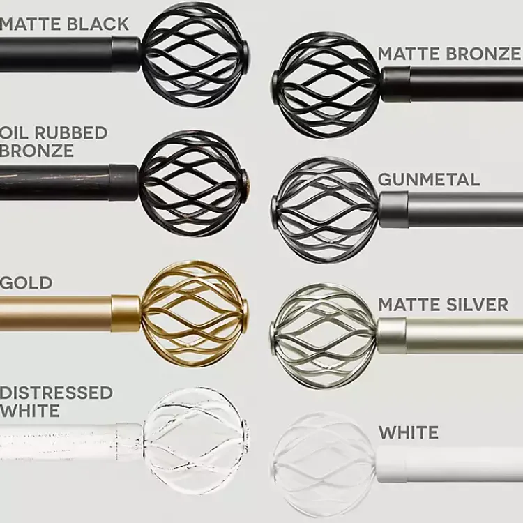 Let the rustic charm of this Distressed White Open Sphere Curtain Rod complete your living space. Its light finish and simple design will easily complement any style of curtain!