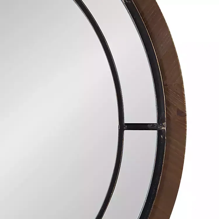 The Audubon Brown Wood Round Wall Mirror will perfectly reflect your classic farmhouse style. The iron overlay and hand-distressed finish lend rustic appeal to its traditional design.