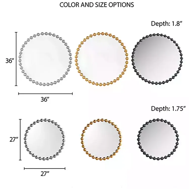 - Overall mirror measures 1.8W x 36 in. in diameter