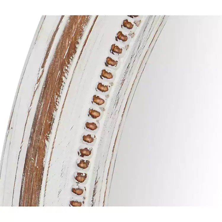 Spruce up any space with the help of a stunning wall mirror. You’ll love how our beautiful Distressed White Wood Round Frame Wall Mirror looks hanging up in your home.