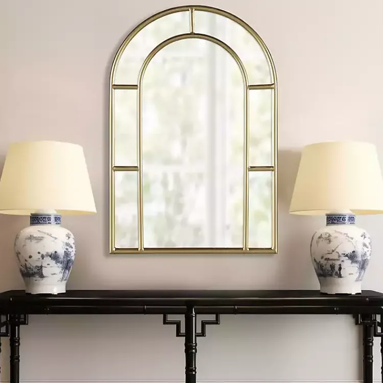 Elevate your farmhouse or cottage decor with our Martha Stewart Gold Paned Arch Wall Mirror. Inspired by old distillery windows, it adds vintage charm and glamour!