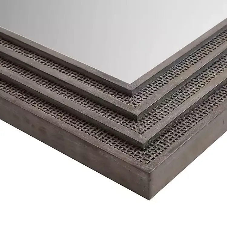 This Martha Stewart Gray Naomi Wall Mirror embodies meticulous craftsmanship, effortlessly blending natural rattan and solid wood around a gleaming glass mirror!