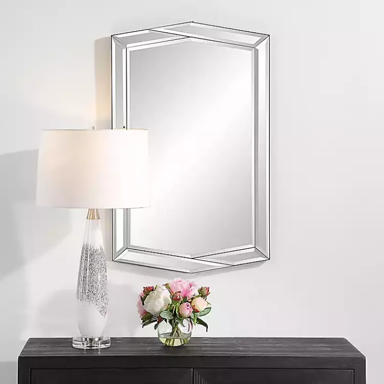 Elevate any space with this chic Overlapping Asymmetrical Bevel Wall Mirror! The asymmetrical design and diamond shape has an elegant look to give your home a sophisticated touch.