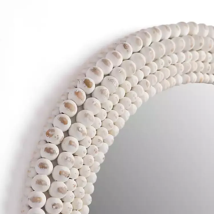 Add variety to your wall decor with the beautiful dimension of a mirror. Our Round Distressed White Beaded Wall Mirror will add texture to your walls, refreshing any room!